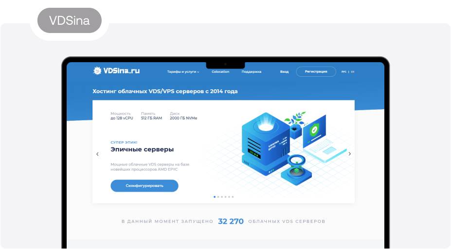 Недорогие VDS серверы. VDSina присутствует на рынке с 2014 г. Местонахождение дата-центров: Россия (Москва), Нидерланды.
