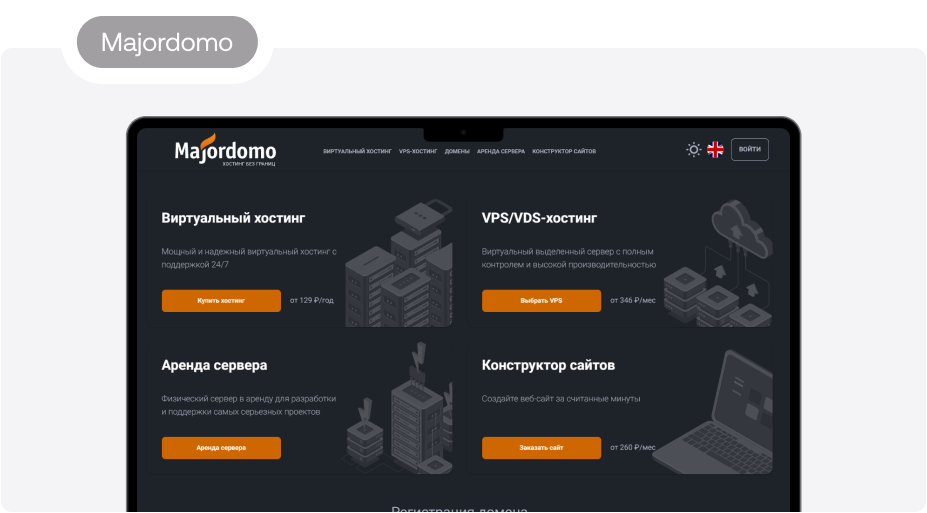 Majordomo — один из старейших хостингов в стране. Местонахождение дата-центров: Россия (Москва, Санкт-Петербург).