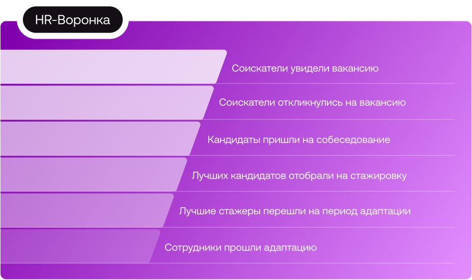 Воронка найма помогает сократить время, которое бизнес тратит на поиск, отбор и принятие на работу новых сотрудников. Также она повышает вероятность привлечения специалистов, которые лучше всего соответствуют запросам и культуре компании.